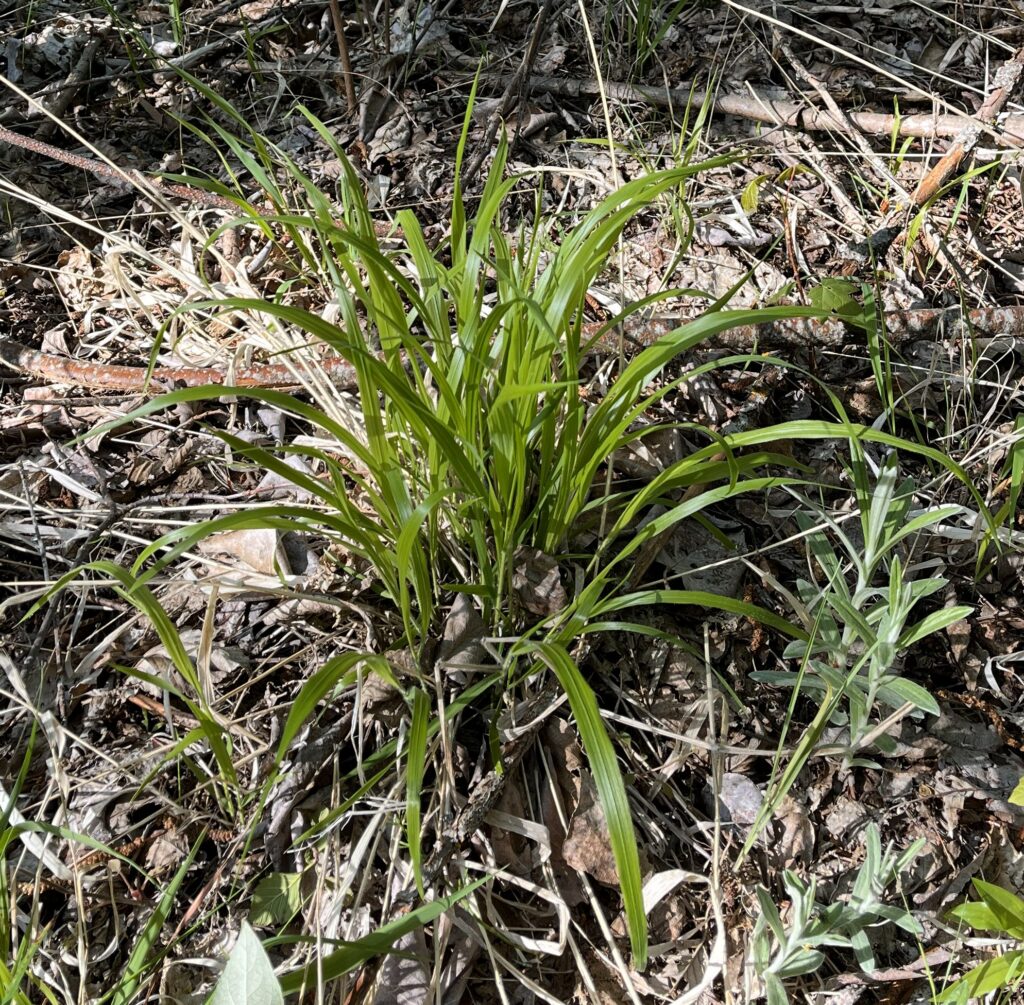 This bright lime green bunchgrass is known for its rapid spread through seed production.  This invasive plant forms dense colonies that can thrive in a variety of conditions, including both sunny and shaded areas, as well as moist or dry soils.  It is commonly found from low elevations up to approximately 3,500 feet.  False Brome (Brachypodium sylvaticum) has two characteristics that help distinguish it from other grasses.  First, the plant is covered with small hairs or “fuzz,” giving it a distinctive hairy appearance and a velvety texture. Second, it flowers are produced in spikelets that are stalkless and directly attached to the stem.